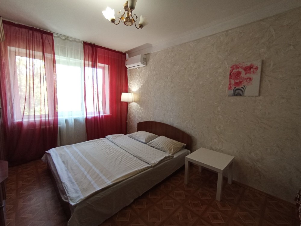 Исторический центр Киева, бул. Л. Украинки 9. Пешком до Крещатика 20 минут, столько же и до Печерской Лавры. Метро Печерская 350м. Хорошая 4-комнатная квартира после косметического ремонта. Чистота и уют. 3 отдельные спальни с 2-спальными кроватями, гостиная с угловым раскладным диваном, дополнительно есть раскладная односпальная кровать. Новые постельные принадлежности, укомплектованная кухня, скоростной интернет и SMART TV 4K 50', кондиционеры во всех комнатах, электробойлер и центральная теплосеть, балкон застеклён, есть городской телефон. Зелёный двор с бюветом, спортивной и детской площадками, со шлагбаумом и парковкой. В доме салон красоты и аптека, рядом кафе и рестораны, супермаркеты, банки, остановки транспорта. Цена до конца войны договорная и зависит от количества дней аренды и числа заселившихся, возможна аренда на любой срок