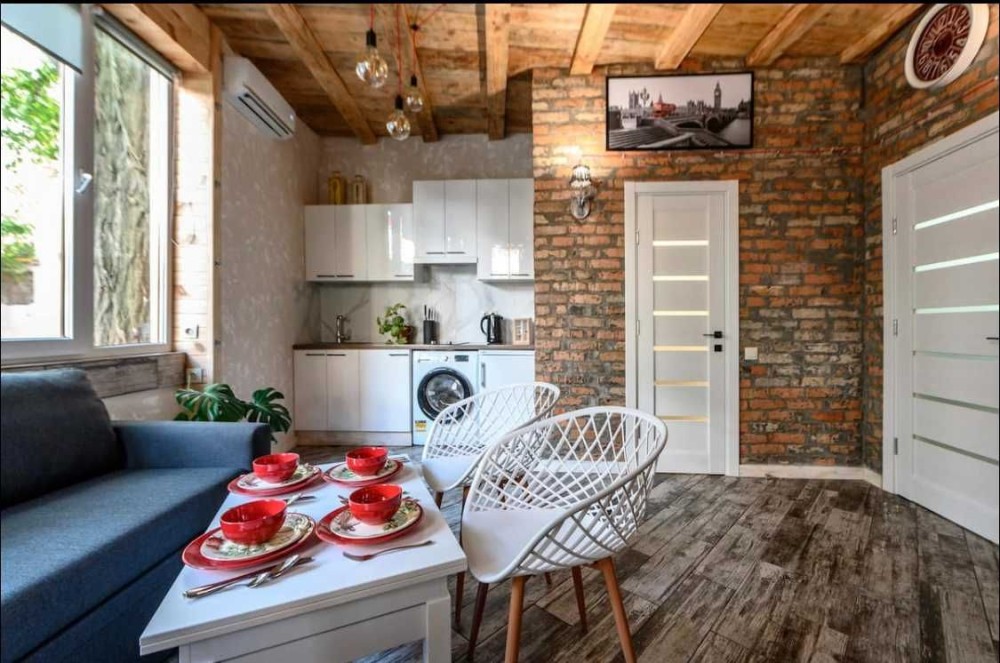 Есть все необходимое для длительного проживания: кухонные принадлежности и инвентарь, бытовая техника, кондиционер, фен, утюг, гладильная доска, сушилка для белья.