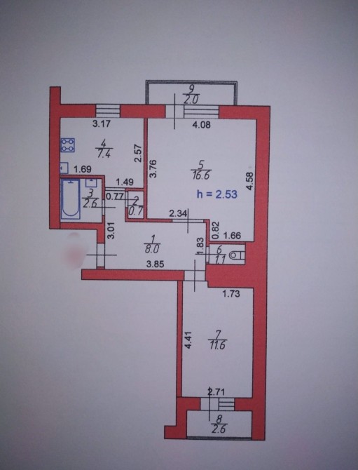 • Площа кухні 7.4 м2