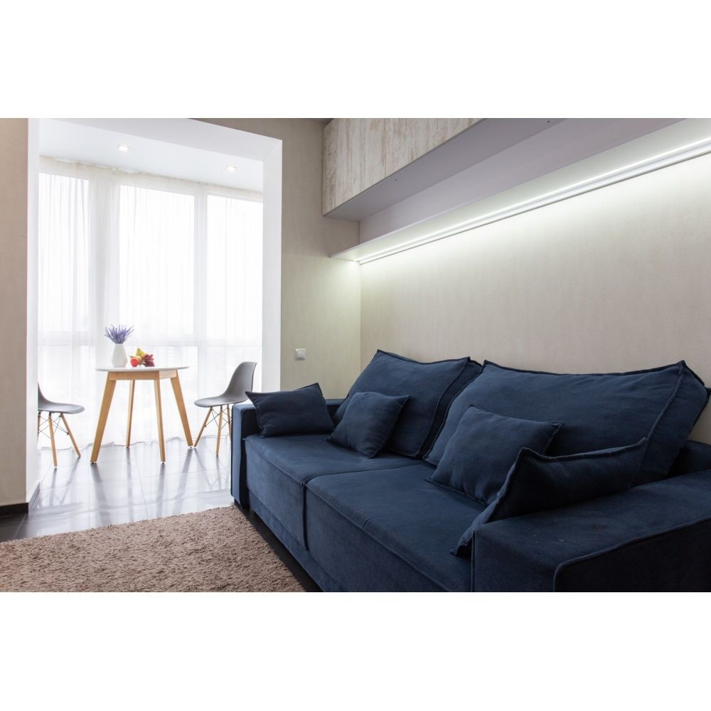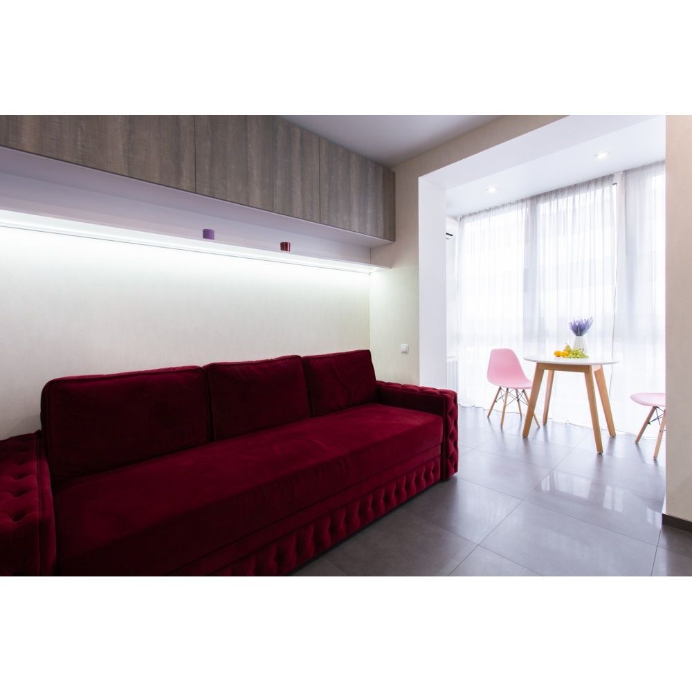 Квартира с синим и красным диваном на фото- это две разные однокомнатные квартиры.