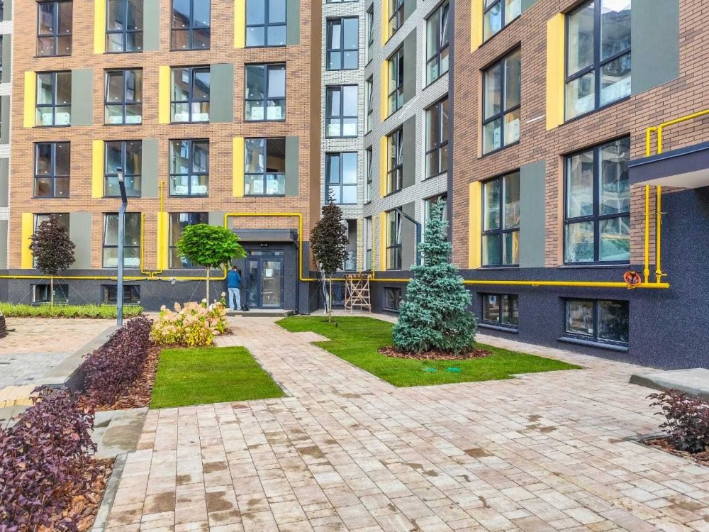 Придомова територія - бруківка, встановленя ігрових майданчиків, сміттєвих баків, освітлення, озеленення.