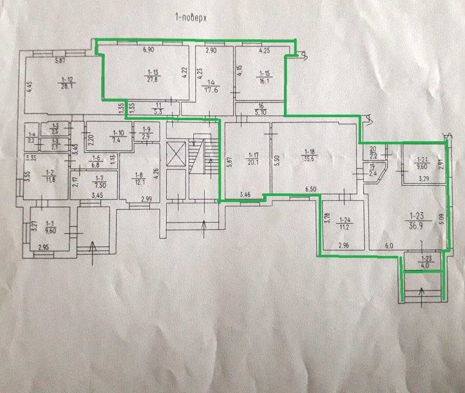 Приміщення конструктивно поділено на 2 зали – 45 м2 та 55,6 м2, кімнати від 15 м2 до 30 м2 тощо. Є можливість перепланування з необхідною конфігурацією.