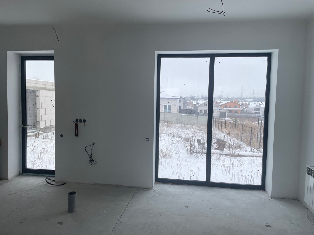 Оздоблення: White box (фарбовані стіни та стелі в білий колір) . У будинок виконані роботи по прокладці труб водопостачання та розведені електрика.