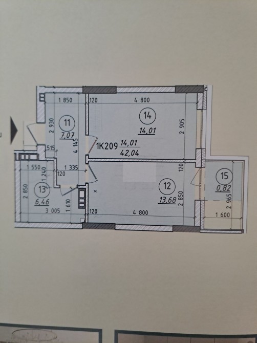 Будинок монолітно-каркасний, стіни цегла, утеплені мінватою(100), загальна площа квартири-42, 04 квм, кімнати- 14,01квм та кухня-студія - 13,68квм.