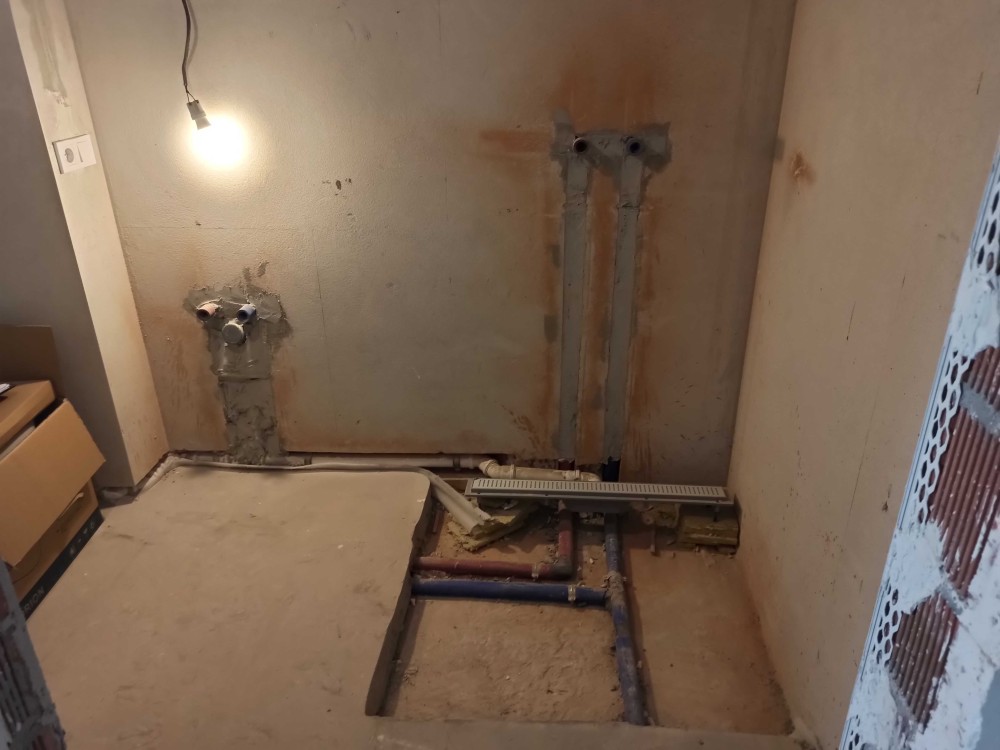 - ОЗДОБЛЕННЯ СТІН в санвузлі - високоякісна цементно-піщана штукатурка