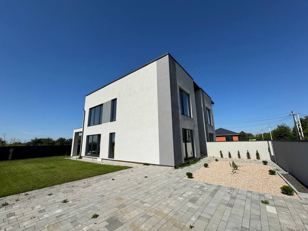 Повністю готовий фасад котеджів, благоустрій: бруківка перед входом та залита тераса роблять зовнішній вигляд котеджу дуже привабливим.