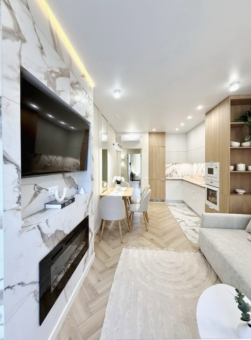 Дуже затишна та функціональна квартира з каміном.знаходиться в готовому будинку зданому у 2023 році.