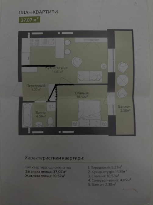 • Загальна площа 37 м2