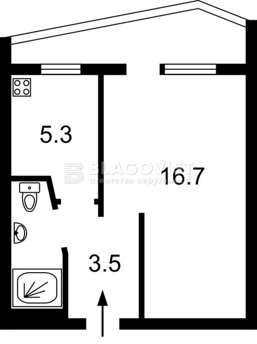 • Площа кухні 5.3 м2