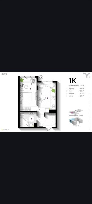 • Загальна площа 44 м2