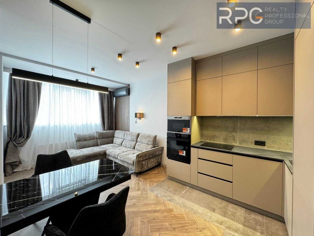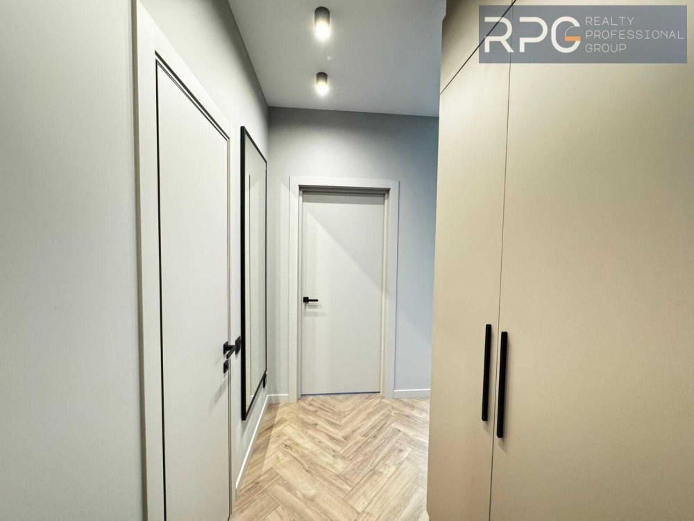 Продумане планування: простора кухня-вітальня, окрема спальня з великою шафою, гардеробна, санвузол із прально-сушильною машиною, підігрів підлоги, зоноване освітлення для затишку в будь-який час.