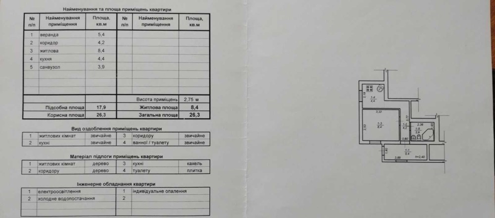 • Загальна площа 26 м2