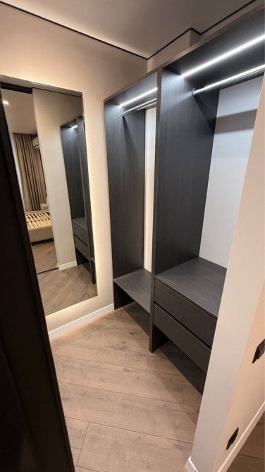 • окремий гардероб із підсвіткою, полицями, системами зберігання