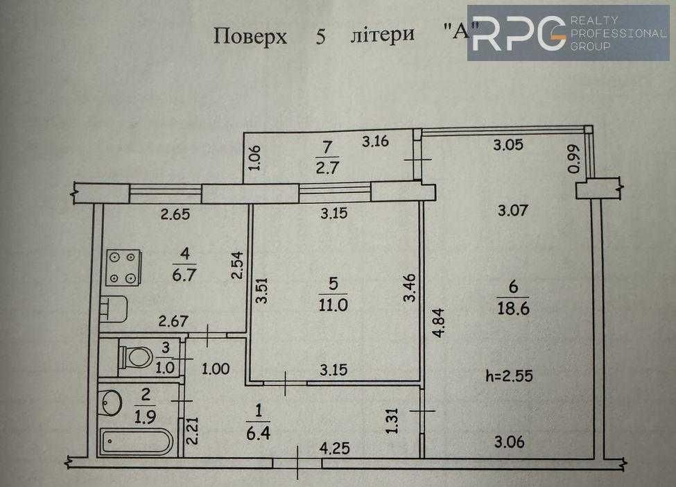 • Площа кухні 6.7 м2