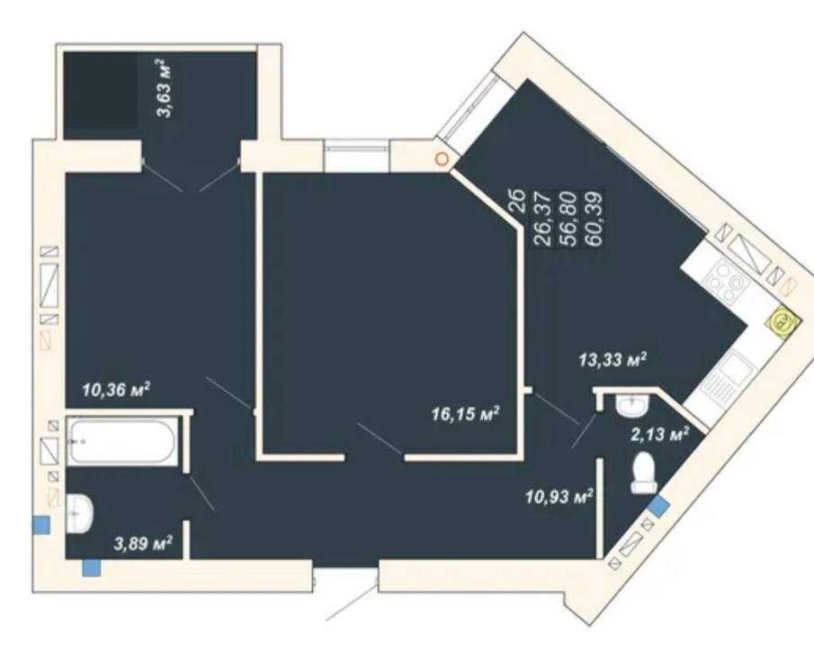 • Загальна площа 58.6 м2