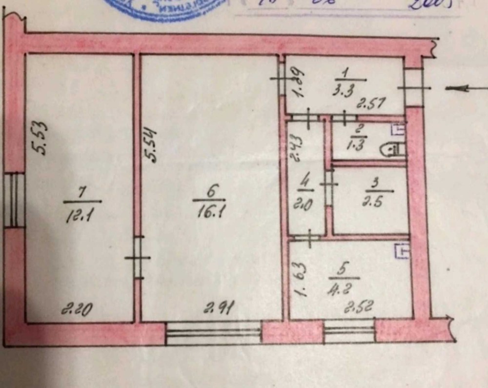 Площа 42 м² / кімнати 16 м² і 12 м² / кухня 4,2 м².