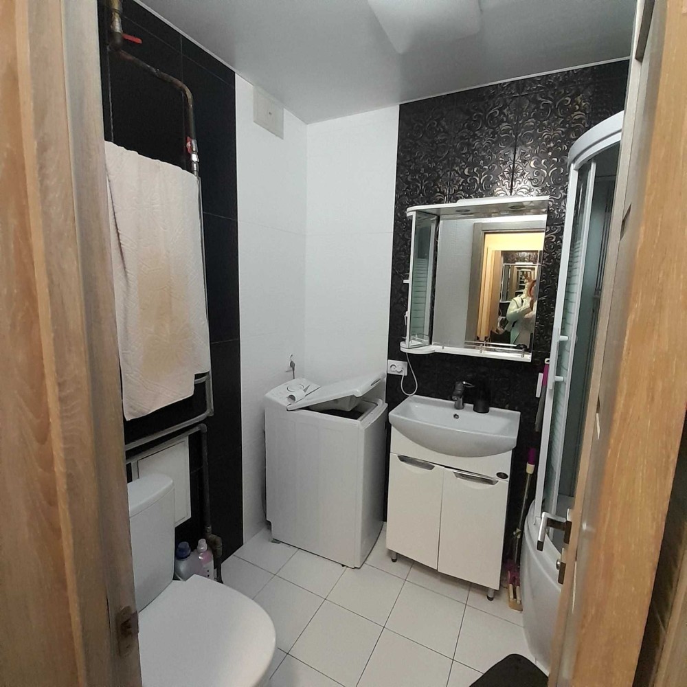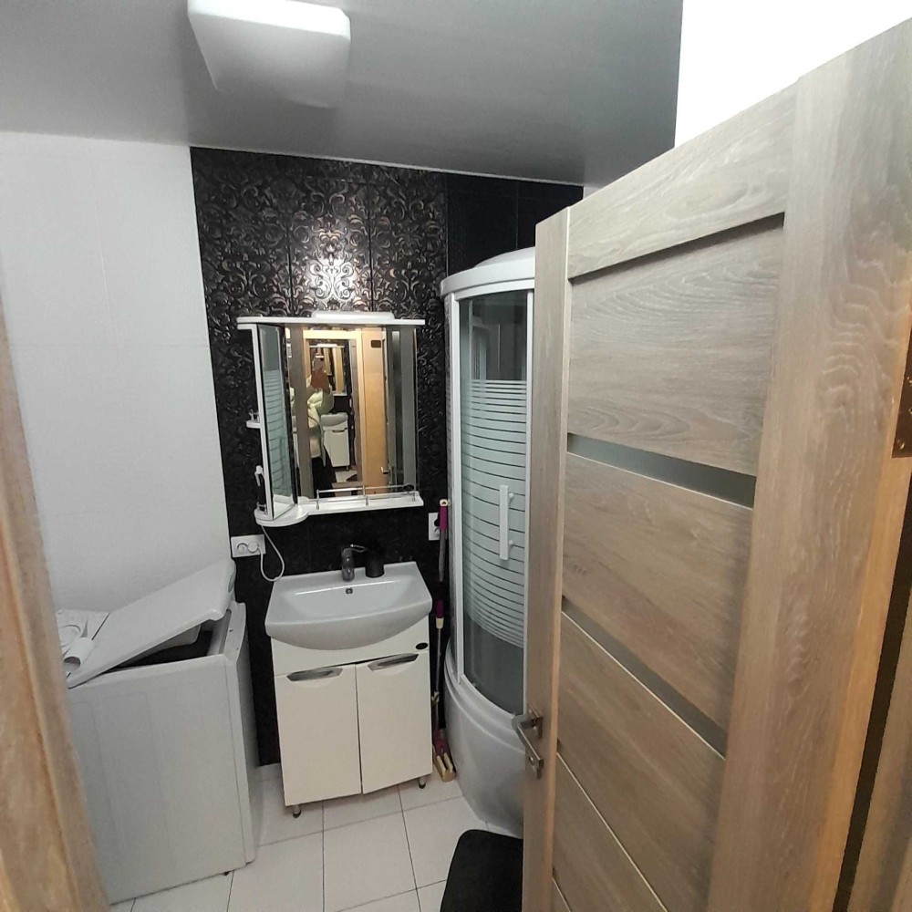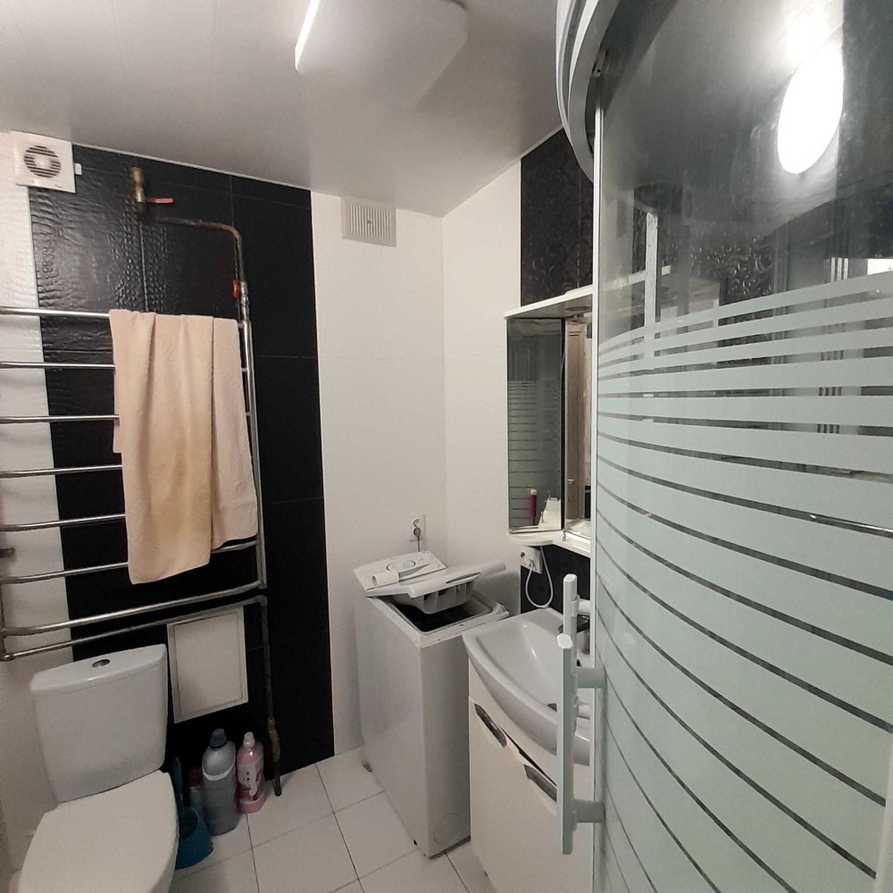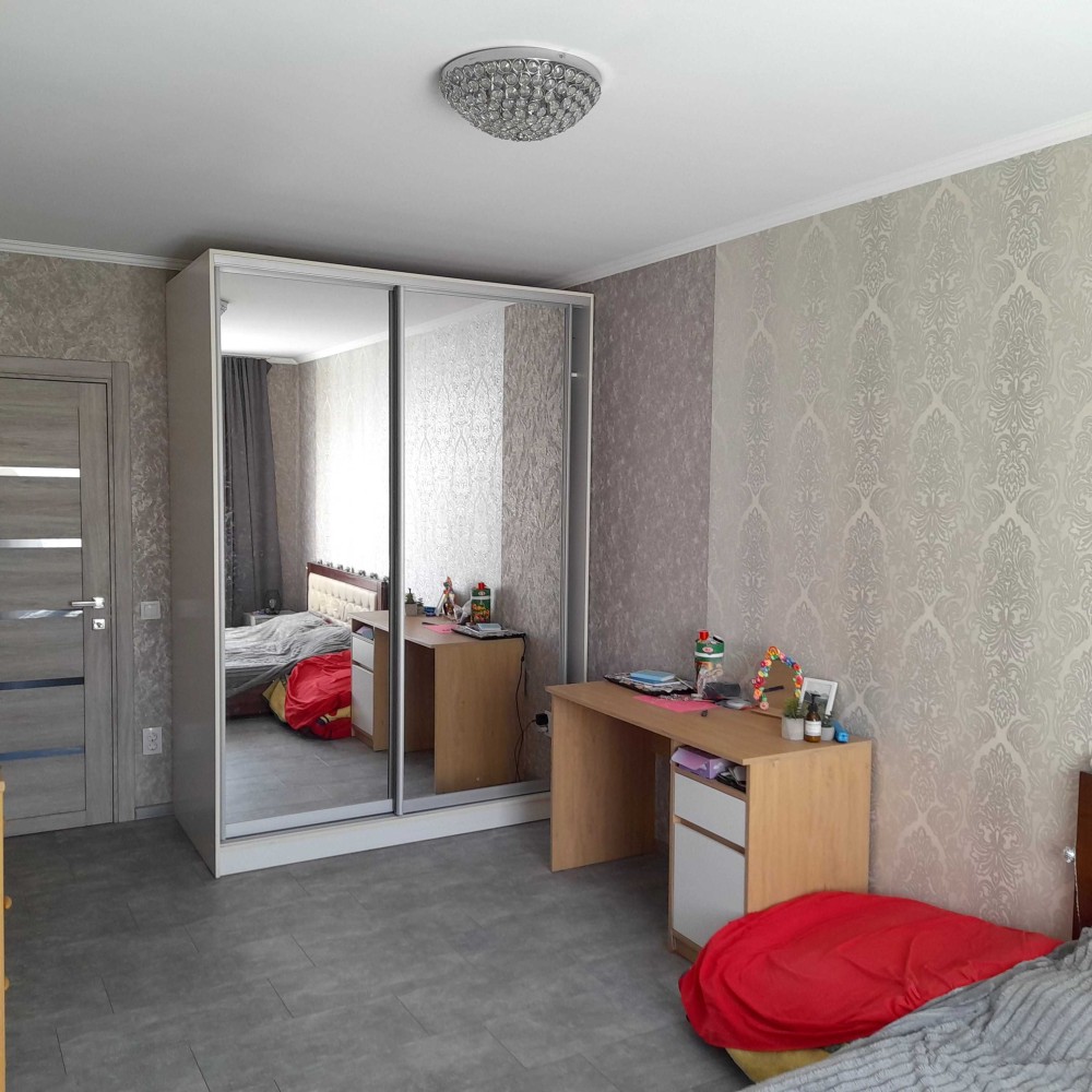 1к Бреуса/Рекордная. 16/17 эт. Общая площадь 48 м, перепланирована в 2х к . Кухня - гостиная 15 м. Сан узел совмещен. В квартире классический современный ремонт. Очень светлая, вид на частный сектор.