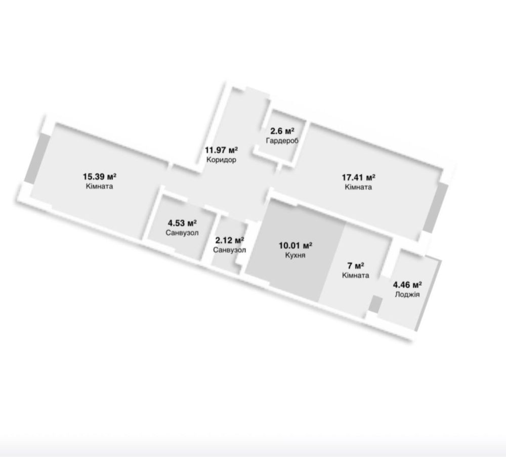 • Два санвузли, гардеробна кімната, лоджія