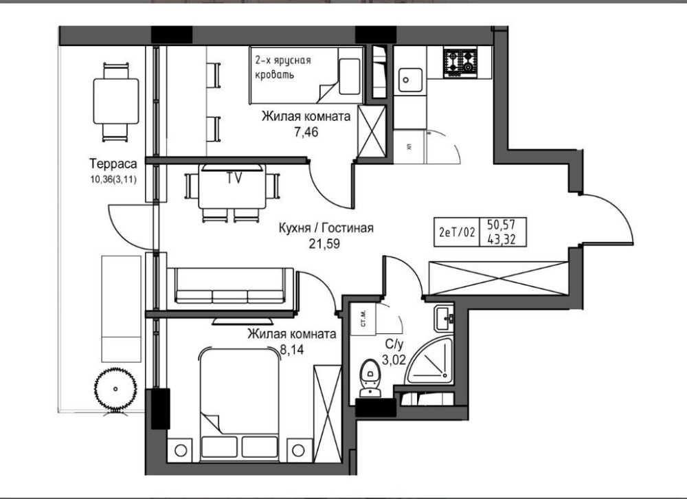 43.32 м2