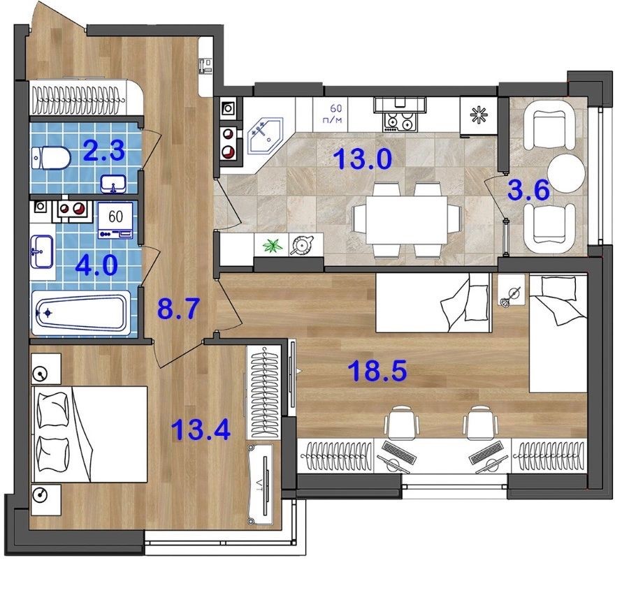 • 68.4 м2