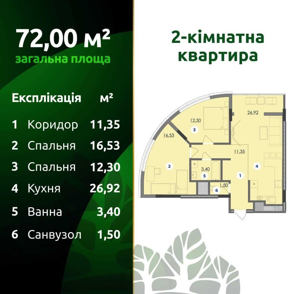 • Загальна площа 72 м2