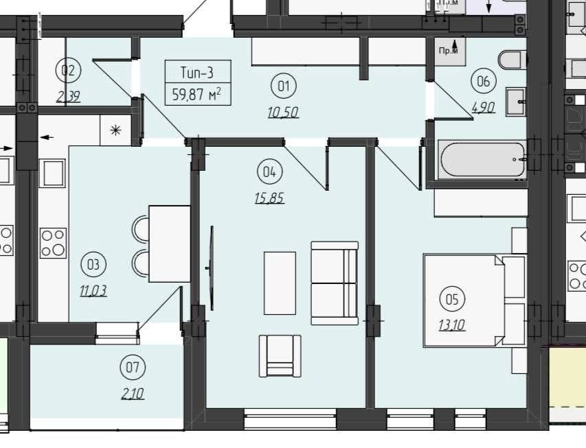 • Трикімнатна