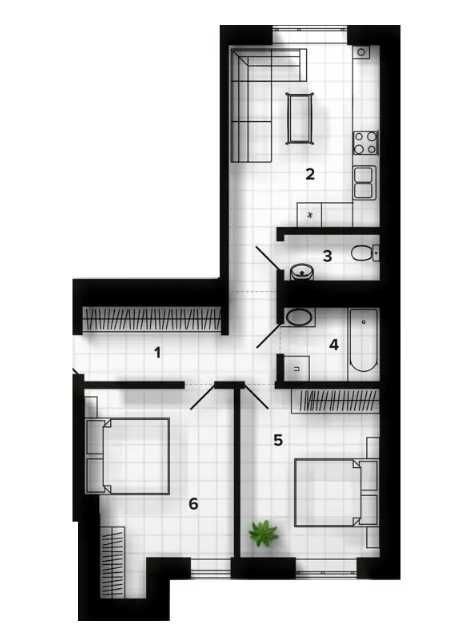 • Загальна площа 60 м2
