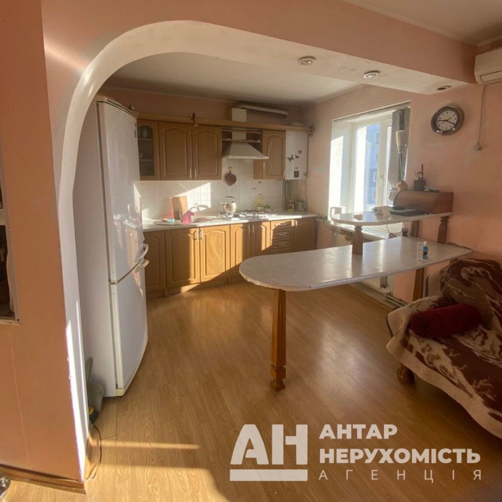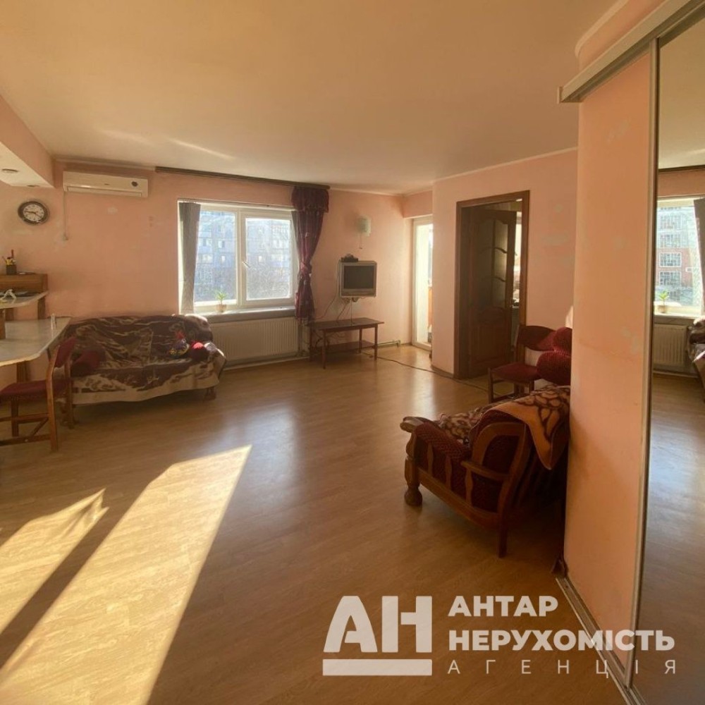 Не кутова, простора квартира-студія з роздільними кімнатами. Перепланована з чотирьох кімнатної. Автономне газове опалення, енергоощадні вікна, великий санвузол, лоджія та балкон засклені. Площа - 90 м². Поверх - 5/5. Над квартирою технічний поверх. Будинок новий, ОСББ, закритий двір.