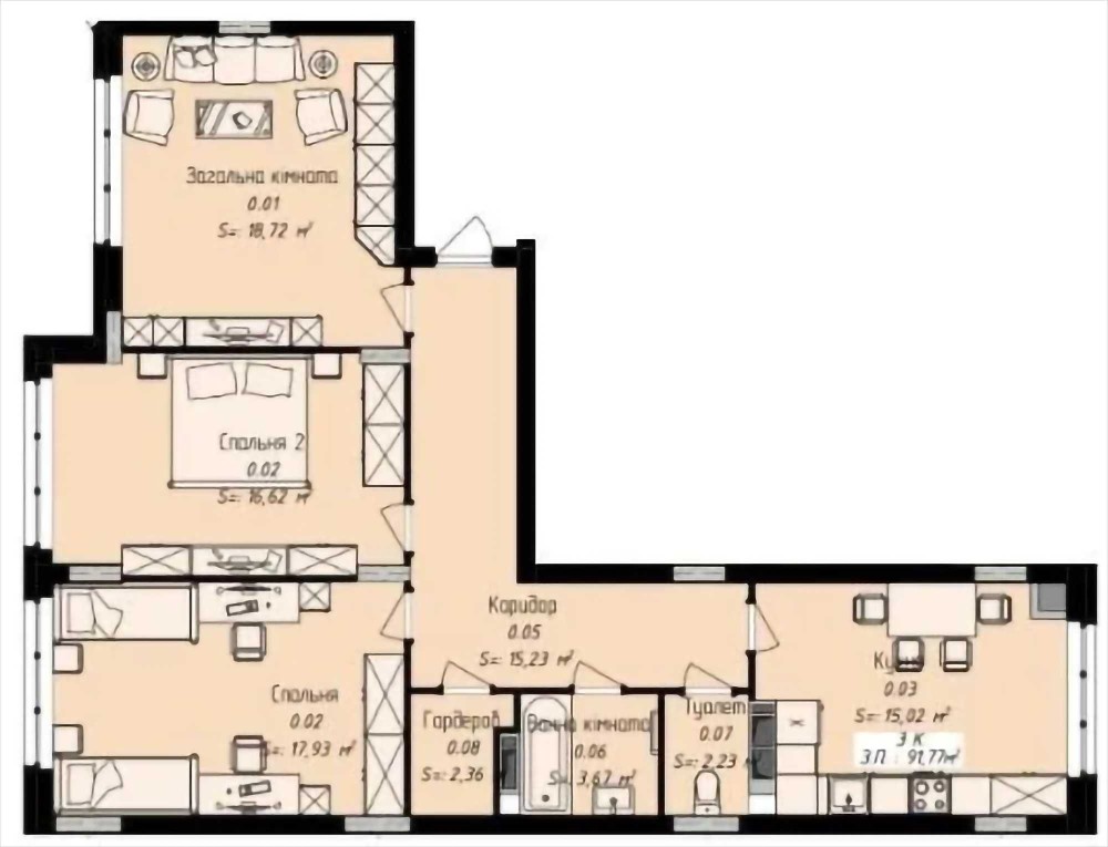 • Площа 91,8 м2