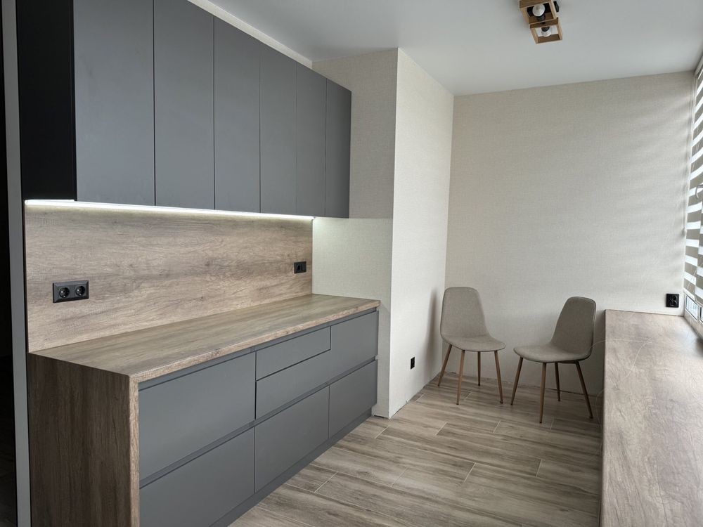 У квартирі зроблений сучасний ремонт, окрім зовнішнього утеплення, квартира утеплена з середини, а саме підлога по всій площині, стеля та стіни на кухні та балконі для більшої енергоефективності. Є тепла підлога в ванній, балконі та кухні. Балкон робився під кабінет. Два кондиціонера в гостинній та спальні. Всі меблі залишаються в квартирі. Зручний гардероб. Квартира готова для проживання. Телефонуйте на WhatsApp, Viber, Telegram.