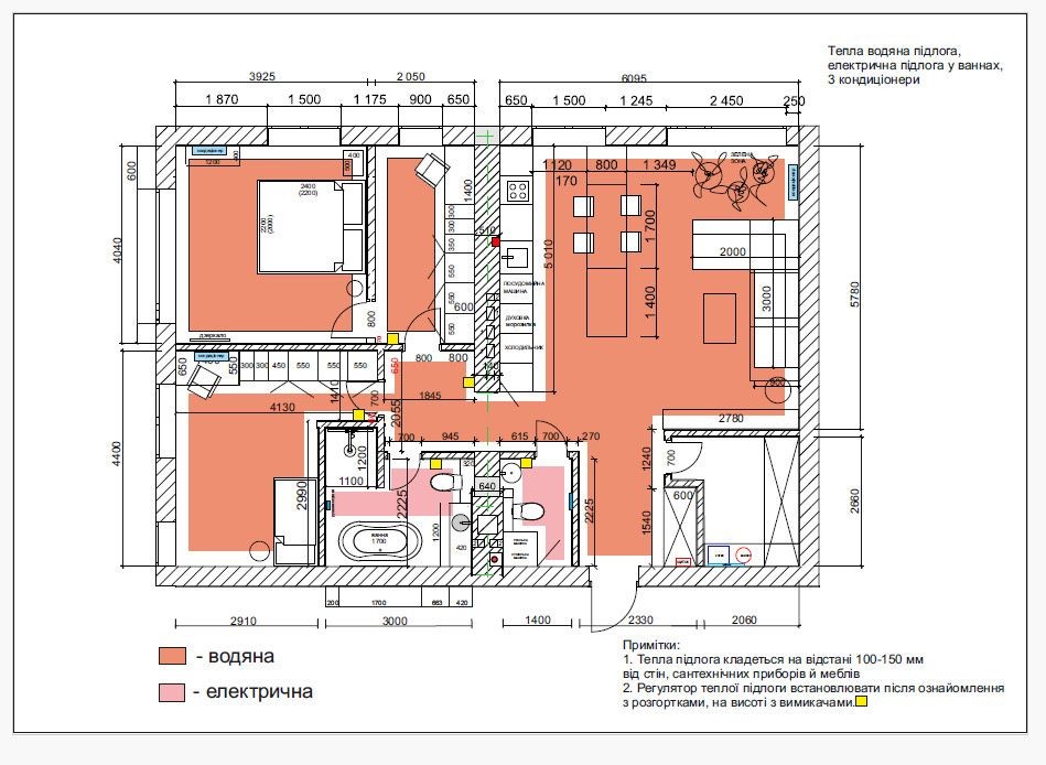 Зроблена тепла підлога (водяна), 18 квт світла.