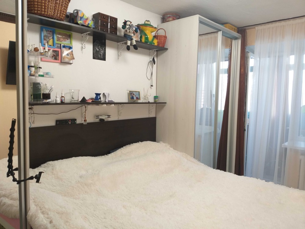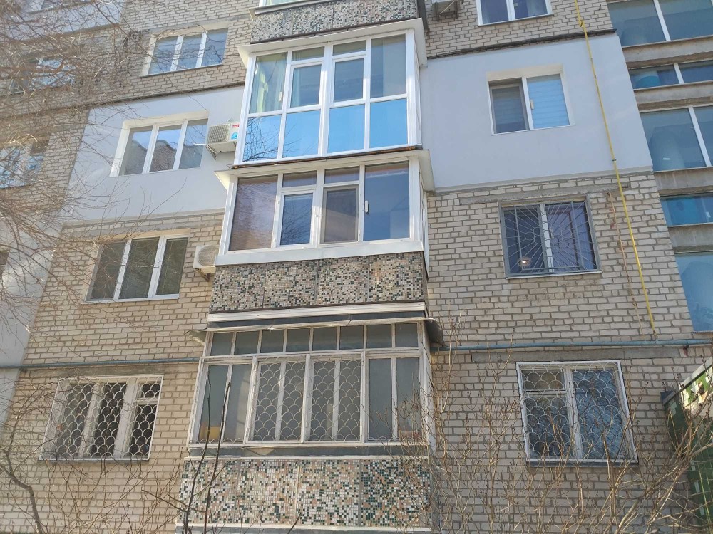 Не угловая, теплая, на две стороны. Комнаты раздельные, правильных форм, светлые. Стены, потолок выровнены. На полу линолеум, ламинат, плитка. Окна МП, балкон и лоджия застеклены МП.