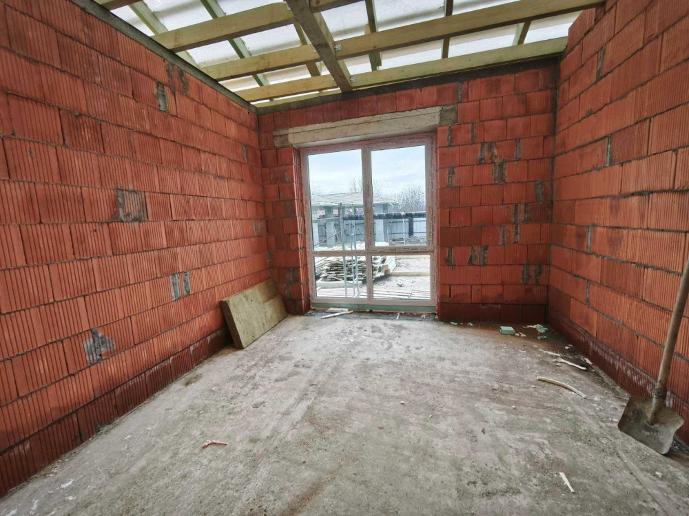 – побудований із цегли.