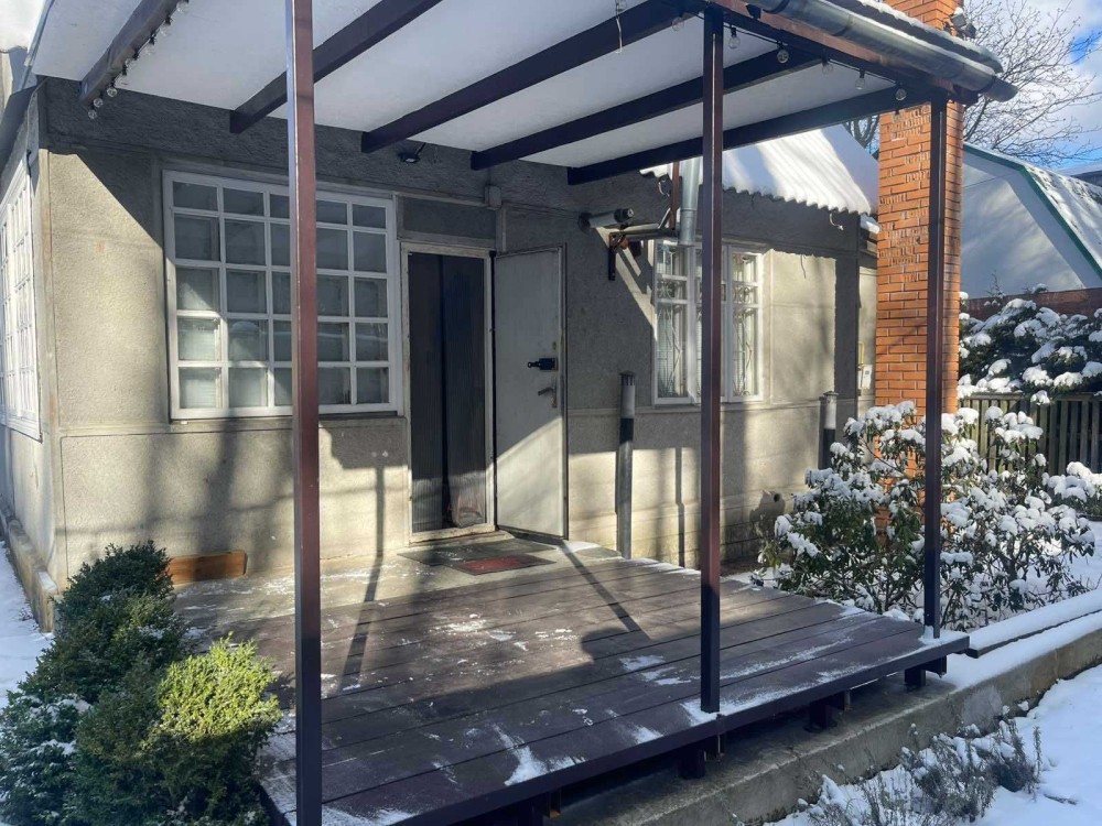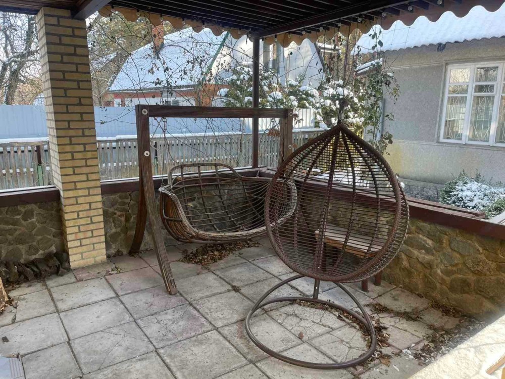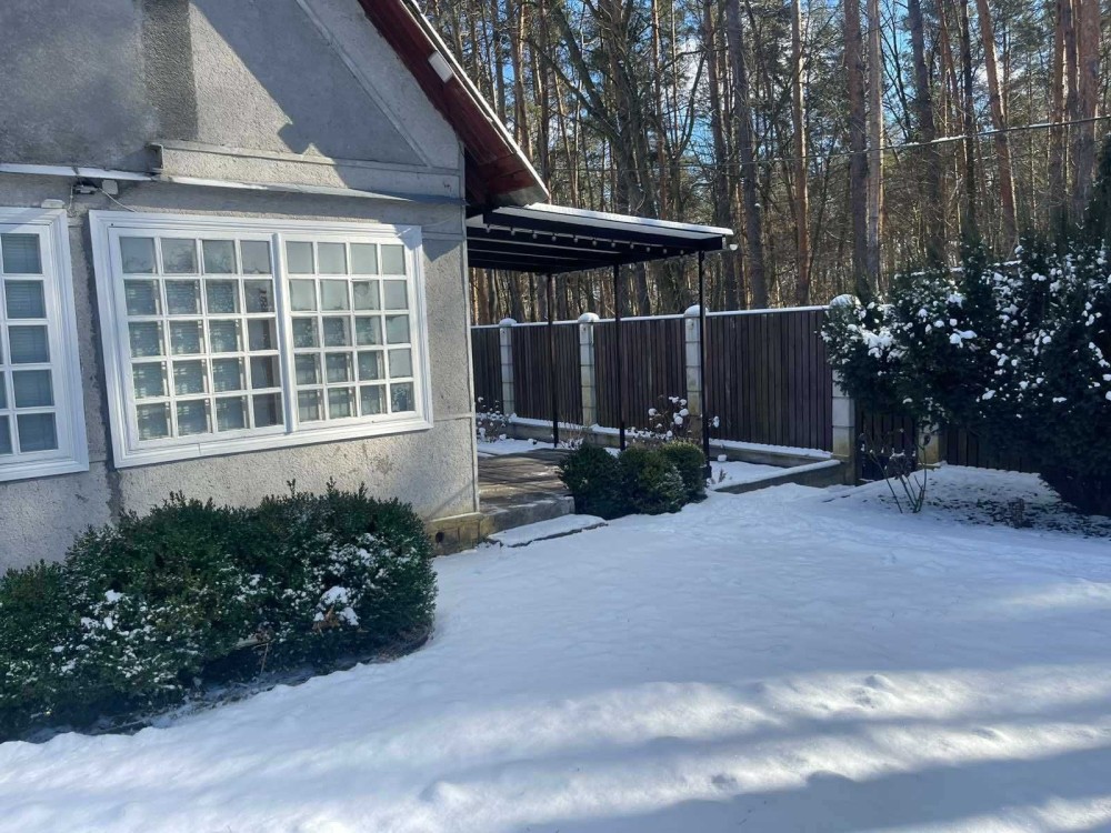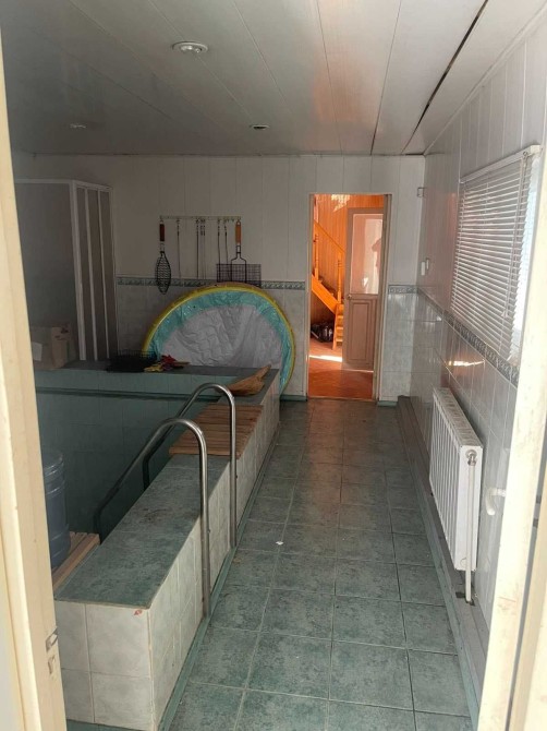 На ділянці основний будинок 100 м.кв і гостьовий будиночок з банею і закритим басейном 50 м.кв.