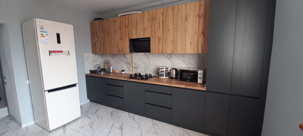 - кухонна техніка( холодильник, мікрохвильова піч,газова плита, витяжка,мийка, пральна машина-нові