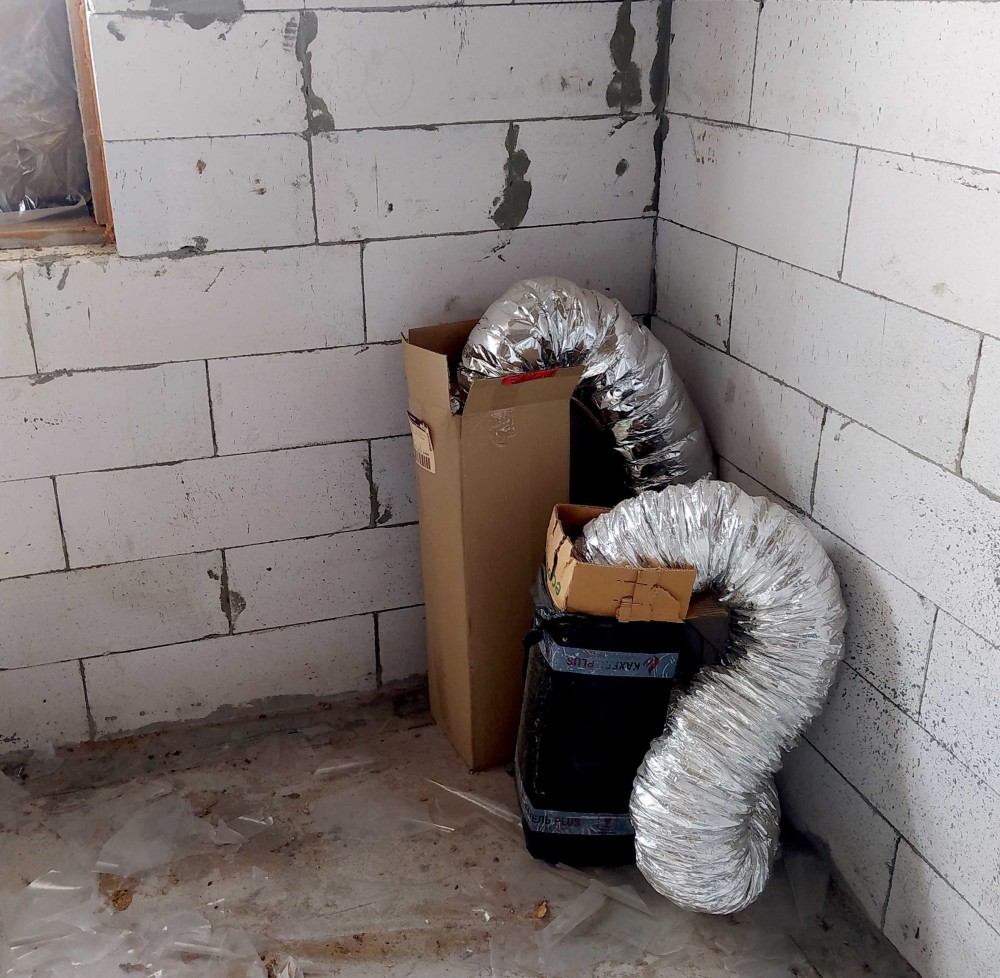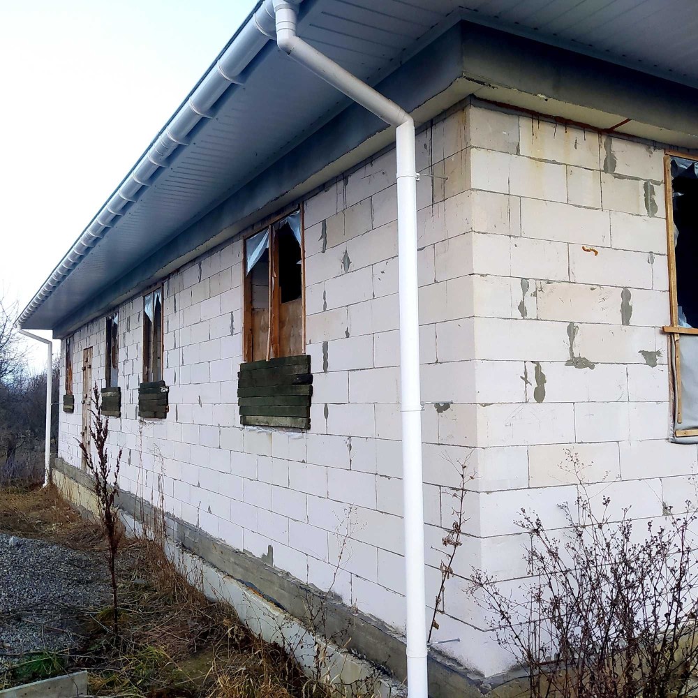 Електрику (8 кВт) заведено до двозонного на три фази електролічильника на ділянці. Затверджено план електрики у будинку. Газ 1 м від межі. Висота підлога - стеля 3м. Закуплено: дошки, плити ОСБ і пароплівка для облаштування горища, дроти для електрики, висувні сходи на горище. Вікно на горищі встановлено. Ділянка 5 соток.