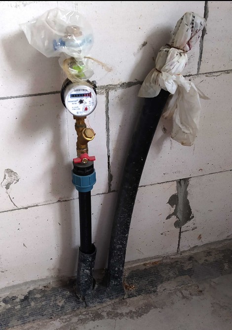 Воду зі свердловини, оснащеної насосом, заведено у будинок. Встановлено лічильник.