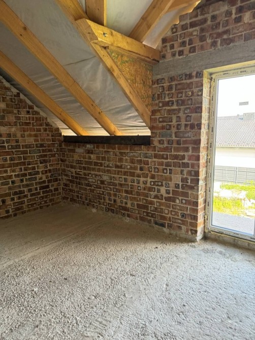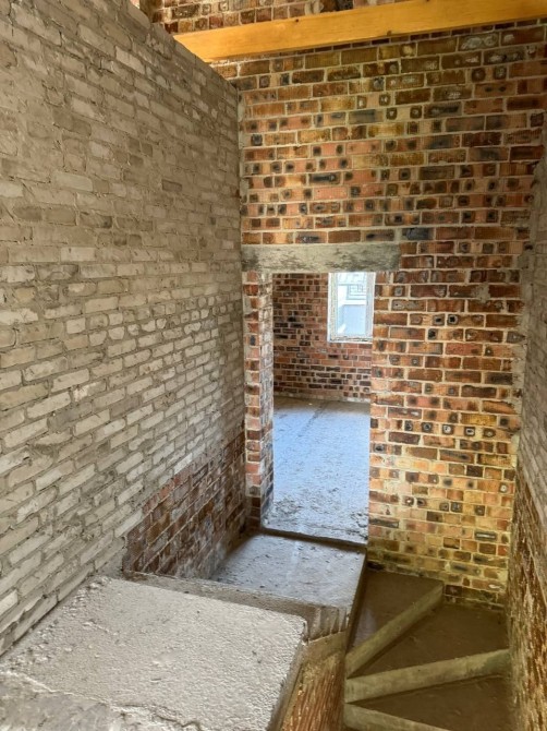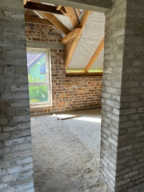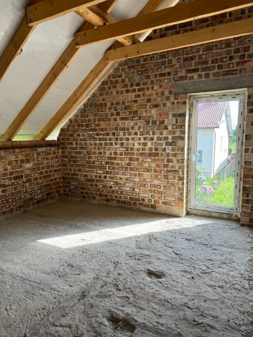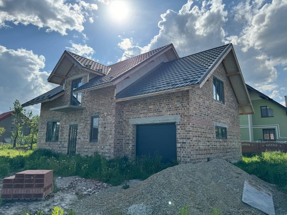Цегляний будинок збудований за сучасним проєктом, на першому поверсі простора кухня-студія, кімната, санвузол, паливна, гараж; на другому поверсі розміщені просторих 5 кімнат.