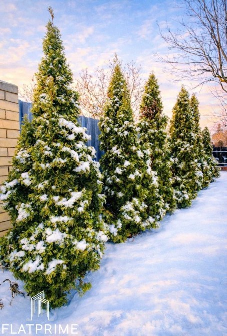 Зона відпочинку: Власний сад із ялинками та обладнана зона барбекю для душевних вечорів на свіжому повітрі.