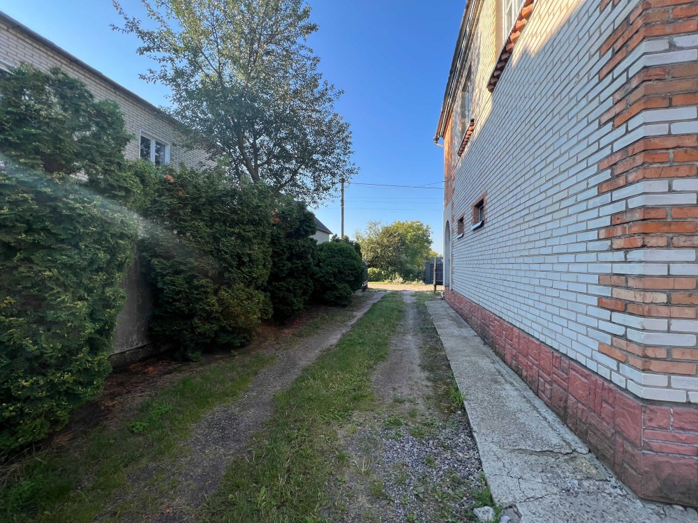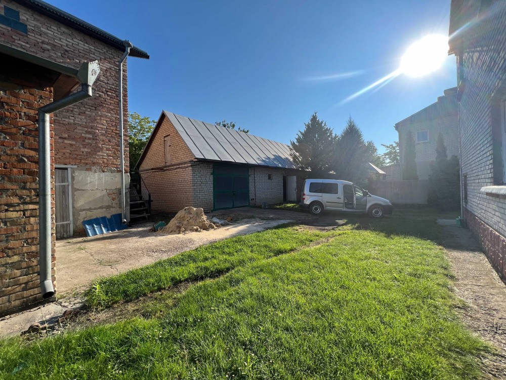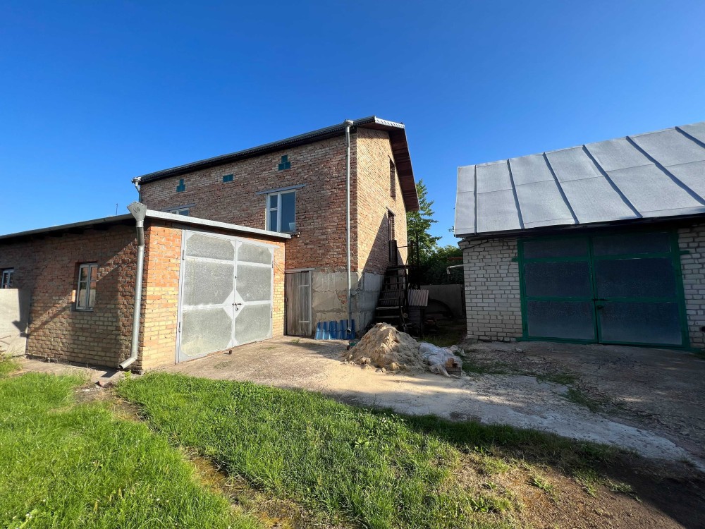 Будинок в тихому місці, зручний під'їзд, теплий, подвійна цегляна кладка, 5 кімнат, 147 кв.м. Господарські будівлі на ділянці - два гаражі, окреме двоповерхове цегляне приміщення під виробництво або склад площею 120 кв.м. На ділянці 3-фазна лінія електропередачі, до ділянки підведено газ. Будинок після будівельників, стіни поштукатурені, потрібно виконати внутрішні роботи (підлога, опалення, сантехнічні роботи). Земельна ділянка 10 соток.