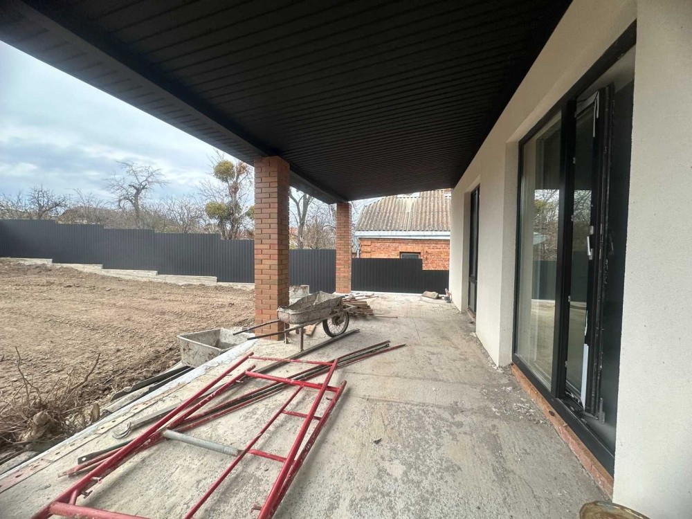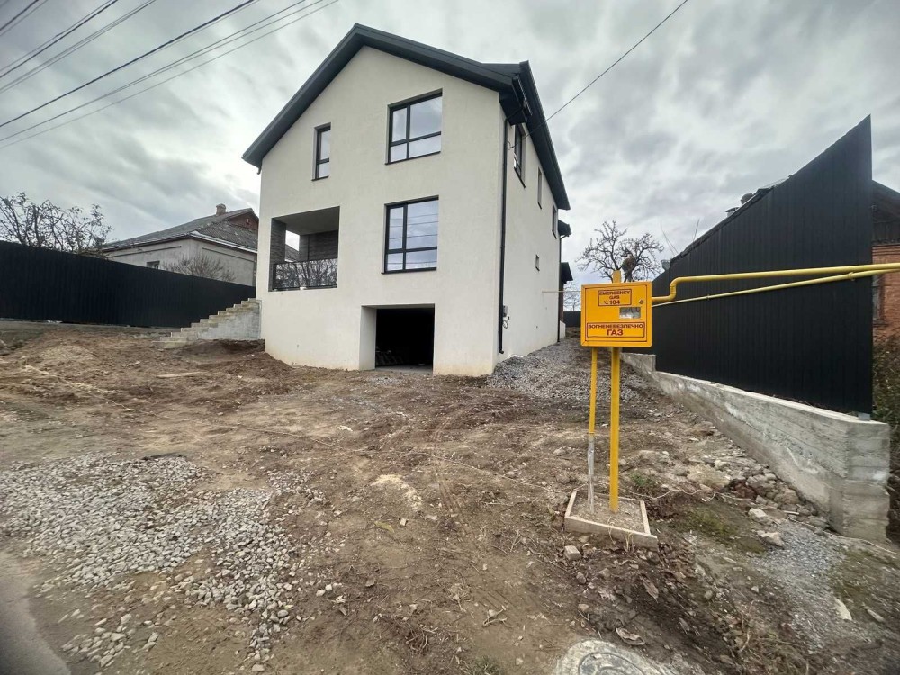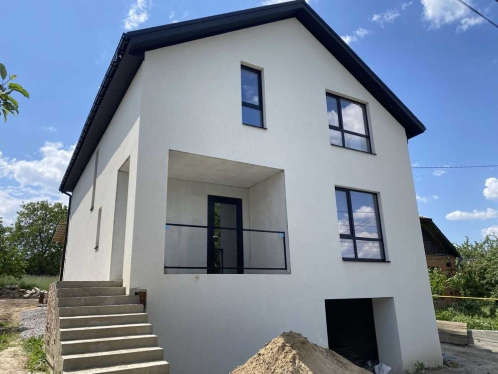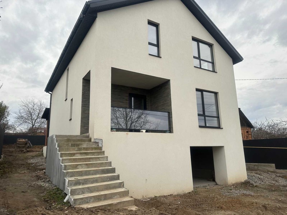 Будинок 186 кв, 6 сот, міські комунікації, чистова штукатурка, стіни 90 см, панорамні вікна, 700 м від прапору, гараж з бомбосховищем.