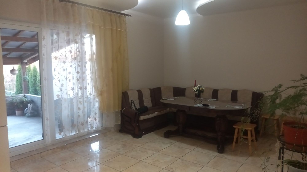 1,5 -пов. будинок збудований з цегли, товщина стін - 55 см, знаходиться по вул. Карпатської України ( колишня Гагаріна), має 2 входи. На 1 поверсі - прихожа, камінна зала, 2 кімнати, санвузол і простора кухня з виходом на терасу. 2-й поверх мансардний на 2 кімнати не житловий.