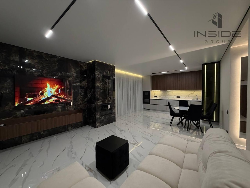 Продається авторський дизайн 2-поверхового дуплексу з площею 126 м² в с. Крихівці. Житлова площа 50 м². Газ,газова плита та інша побутова техніка. Кухня-студія з панорамними вікнами. Ділянка 2,5 сотки.