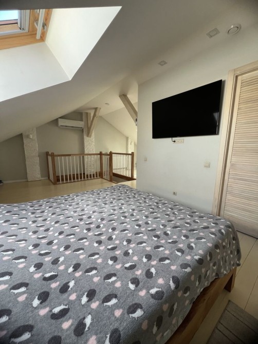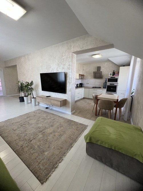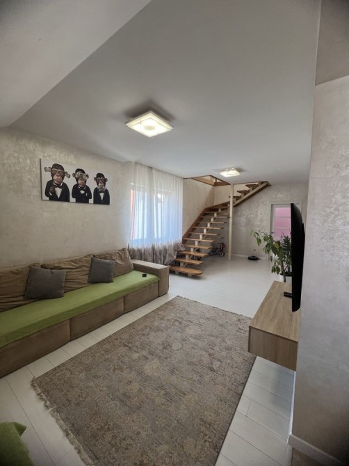 Продається двохповерхова квартира з кухнею-студією у Кампотному районі. У квартирі сучасний ремонт, дві спальні, кухня-студія, два санвузли та гардеробна кімната. На першому та другому поверсі квартири кондиціонери.