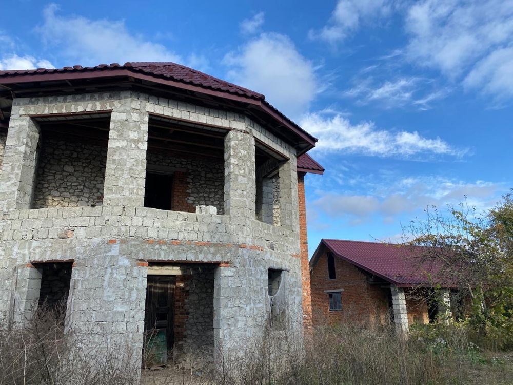 Двоповерховий будинок по вулиці Богуна, готовий на 65%. В середині вже пощекатурений з мансардою,по бажанню мансарду можна переробити в житлову зону. Фундамент-бетонні блоки.Загальна площа будинку 240м квадратних. На першому поверсі вже є готовий до експлуатації гараж. Також знаходиться на поверсі кухня, вітальня, ванна, вбиральня ,прихожа. На другому поверсі 4 житлових кімнат плюс одна кімната відпочинку з панорамою. На території також побудовано кухню на три розділені кімнати з повноцінним підвалом яке можна використовувати як бомбосховище. Є підведене світло три фази і колодязь на подвірʼї. За більш детальною інформацію звертайтеся за номером +38**************40.