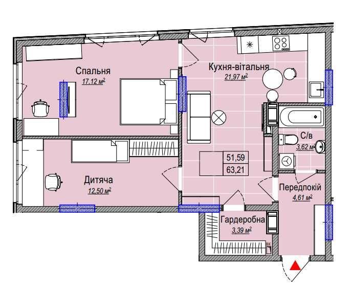 • Загальна площа 63 м2