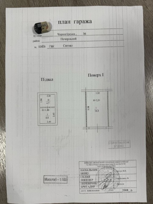 Продається гараж, Печерський район, вул. Чорногірська 36. Площа 18,5, підвал 10,7. Фундамент бетон, стіни з цеглі. Покрівля - руберойд, у 2024 зроблений новий. Територія під охороною.