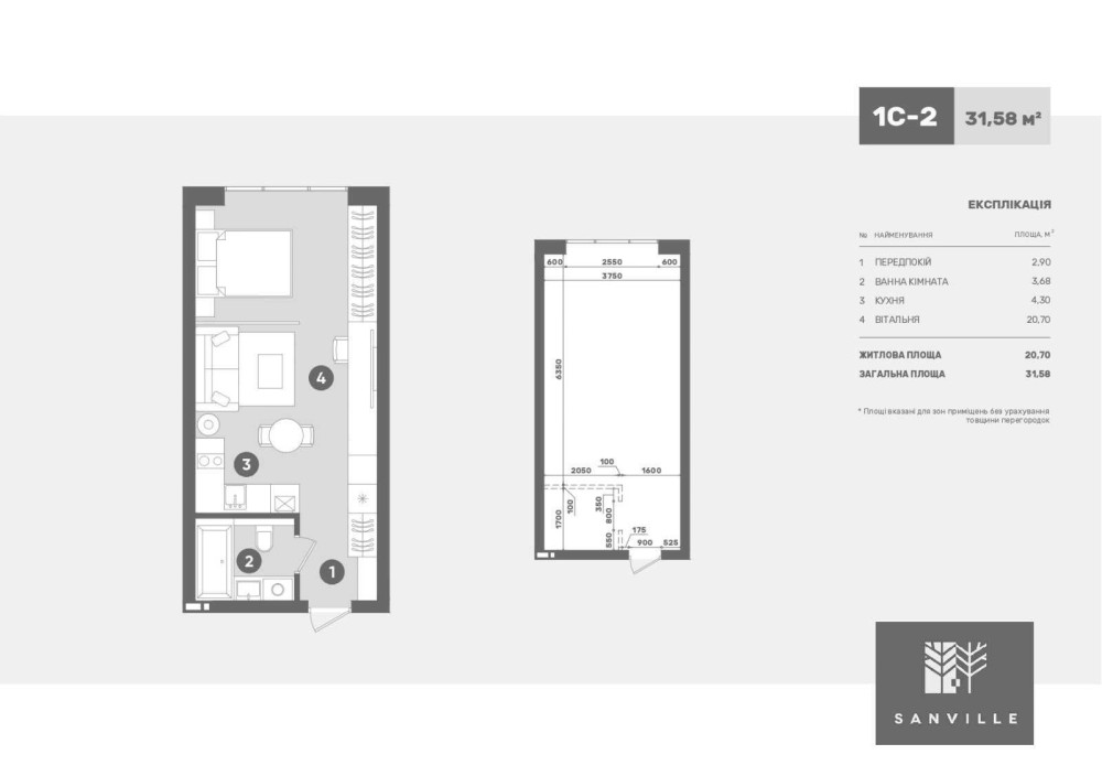 • Загальна площа 31.58 м2