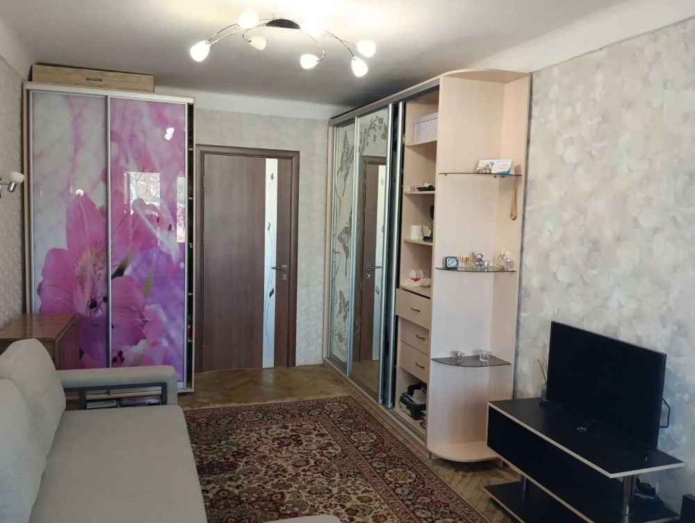 Кімната 14.3 м.кв. 5 поверх 5-поверхового цегляного будинку, загальна площа - 24 м.кв.. Кімната світла, тепла. Замінена електропроводка, вікно металопластикове, паркет.