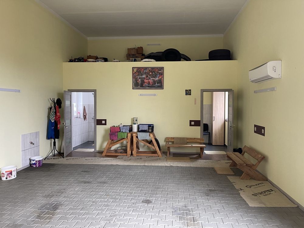 Продається комерційне приміщення яке зроблене під ремонт, сервісні роботи автобуса або фури заг. пл.120м2, висота 4,5 м, висота заїзду 4м, нова будівля, 12сот приватизованої зем. діл. Є нова огорожа, бруківка, боковий навіс, заведено 3фази 15квт світла, власна вода, септик, всередині є побутове приміщення, кухня, кондиціонер, все нове . Поруч 50м траса Київ Чоп . Є можливість збільшення зем ділянки.